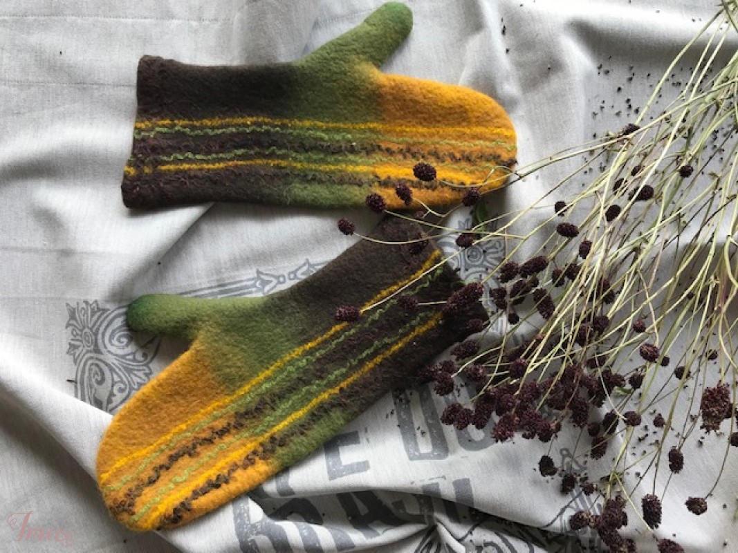 Išskirtinio dizaino rankų darbo veltos pirštinės. Pirštinės yra veltos iš labai minkštos, švelnios ir šiltos merino avių vilnos, todėl bus jaukios dėvėti ir puikiai šildys rankas. Daugiau mano darbų: https://www.facebook.com/Magicfeltdesigns/