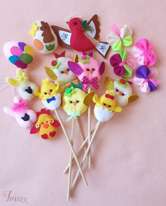 Iš veltinio. Pakabinamos ir su pagaliukais.