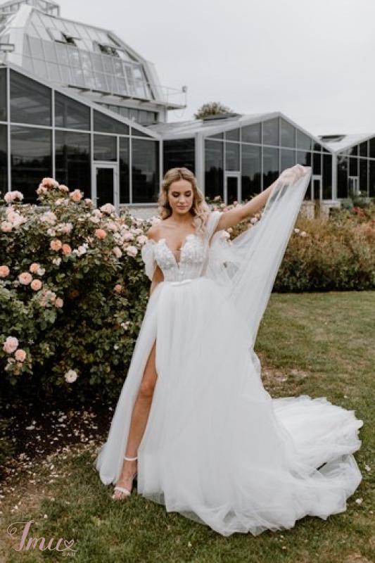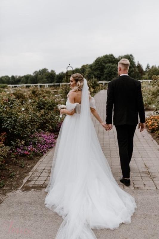 Išvalyta princesiška suknelė, kuri tiks XS/S dydžiams. Pirkta nauja, iš salono “Mados namai Jurgita”. Mano ūgis 1.69, dėvėjau 10 cm aukštakulnius. Suknelės sijonas puoštas mažyčiais blizgučiais, gražiai žėri prieš šviesas ir saulėje. Taip pat pridedu ir nuometą (nevalytas). Suknelė lengvai taisoma per krūtinę - tinklelį galima padidinti arba pamažinti, taip pat galima trumpinti ir pačią suknelę. Viršus puoštas gėlytėmis. Rankoves galima nuimti ir suknelę dėvėti be jų arba pritaikyti kitas rankoves/pirštines. Matuotis galima Kaune. Su rimta pirkėja kaina derinama 🌸 Galiu atsiųsti daugiau nuotraukų ir video 📸