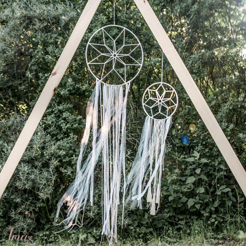 www.facebook.com/savannaLT www.instagram.com/savanna.lt/ Dekoracija sapnų gaudyklė vestuvių ar kitos šventės arkos puošimui. Sukuria lengvą boho nuotaiką. Didesnės skersmuo 40 cm, aukštis 150 cm; Mažesnės skersmuo 25 cm, aukštis 88 cm; Virvė medvilnė, puošta tiuliu ir gipiūro juostele; Siuntimas lietuvos paštu 4 eur; Kaina perkant kartu 30eurų. Kreipkitės savannaHome.info@gmail.com – atrašysiu kuo greičiau 🙂