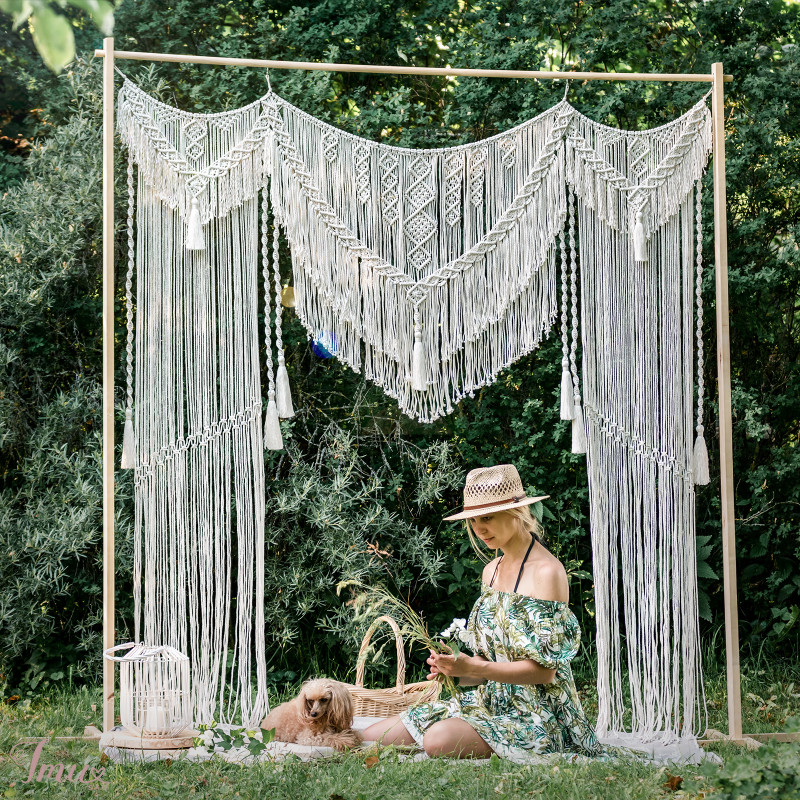PARDUOTA www.facebook.com/savannaLT www.instagram.com/savanna.lt/ Macrame vestuvių arka - vestuvių ar kitos šventės arkos puošimui. Tinka kaip fotosesijų fonas. Sukuria lengvą boho nuotaiką. Dydis 190x210 cm; Virvė medvilnė; Siuntimas paštomatu nemokamas; Kainą galim derinti - parašykite. Kreipkitės savannaHome.info@gmail.com – atrašysiu kuo greičiau 🙂