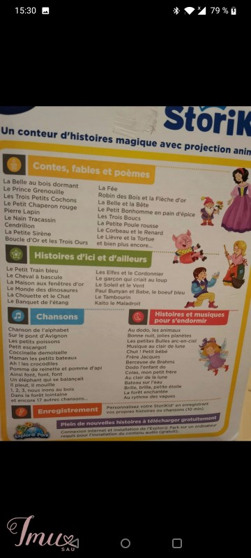 Pasakas sekas, rodo paveikslėlius ant sienos ir pan. Prancūzų k.