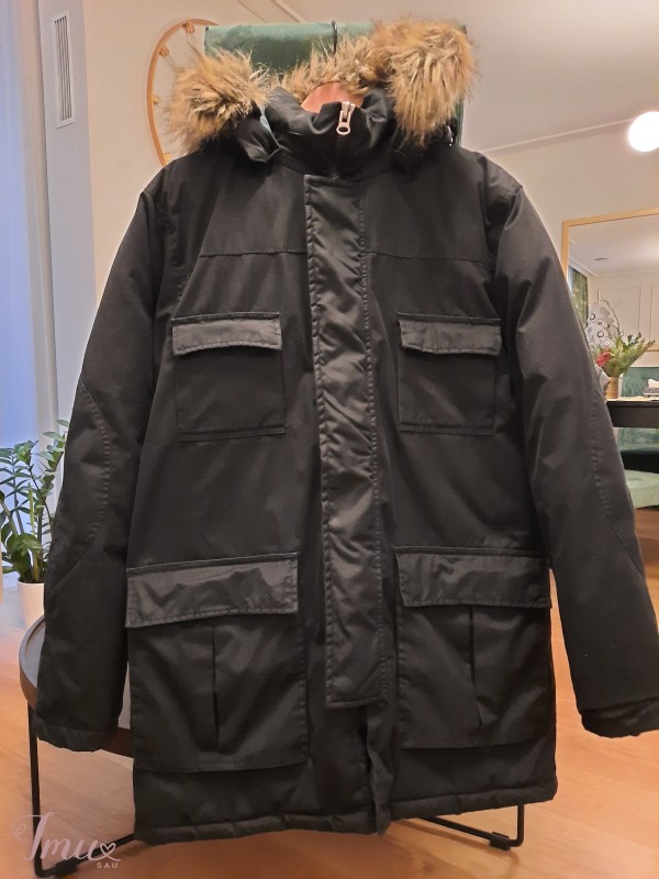 Dėvėta šilta vyriška žieminė striukė du kapišonu. Kapišonas nusisega. M dydis. Būklė gera. Apačioje apsitrynęs užtrauktukas (paskutinė njotrauka), bet užsisega gerai.