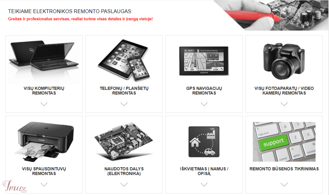 www.marsietis.lt – profesionalus kompiuterių remontas visoje LIETUVOJE! WWW.MARSIETIS.LT - ELEKTRONIKOS REMONTO LYDERIS VISOJE LIETUVOJE VISŲ KOMPIUTERIŲREMONTAS - Atliekamas bet kokio sudėtingumo remontas. Turime visas reikalingas detales ir įrangą vietoje. Suteikiama konsultacija ir diagnostika. TELEFONŲ / PLANŠETŲ REMONTAS - Keičiame, taisome, perrašome, atgaiviname įvairius telefonus, planšetes, greitai, kokybiškai ir patikimai. GPS NAVIGACIJŲ REMONTAS - Atliekame visas paslaugas susijusias su GPS navigacijomis. Konsultuojame apie GPS įsigijimo ar kitais klausimais. VISŲ FOTOAPARATŲ / VIDEO KAMERŲ REMONTAS - Remontuojame įvairių gamintojų skaitmeninius fotoaparatus, video kameras ir jų priedus. Visus darbus atliekame greitai, kokybiškai, darbams suteikiame garantijas. VISŲ SPAUSDINTUVŲ REMONTAS - Teikiame visų tipų spausdintuvų, kopijuoklių, faksų aparatų, daugiafunkcinių įrenginių techninį servisą. Atliekame rašalinių ir lazerinių spausdintuvų kasečių pildymą. KITOS ELEKTRONIKOS REMONTAS, KAIP: Siurbliai, langų valymo robotai, televizoriai, tatuiruočių mašinėlės, Led šviestuvai ir pan. NAUDOTOS DALYS (ELEKTRONIKA) - Prekiaujame naudota elektronika ir jos dalimis. Gausus pasirinkimas ir garantija. REMONTO BŪSENOS TIKRINIMAS - Galite patikrinti Jūsų remonto užsakymo būseną. www.marsietis.lt / +37067701977 / Vilniaus g. 230, Šiauliai / Tilžės 107, Šiauliai / info@marsietis.lt Nesvarbu iš kokio miesto esate, mūsų kurjeris paims sugedusį įrenginį ir pristatys Jums veikiantį. Mokėjimas po pristatymo. Rinkitės tai, kaip jums patogiau: galite atnešti savo kompiuterį pas mus (Vilniaus g. 230, Šiauliai arba Tilžės 107, Šiauliai), atsiųsti arba mes galime paimti iš namų per kurjerį, o sutvarkytą pristatyti atgal (atsiskaitymas atliekamas grąžinus kompiuterį savininkui). KONTAKTAI: Tel. +370 677 01977 info@marsietis.lt, www.marsietis.lt Darbo laikas: I–V: 8-18 val., VI: 8-14 val.