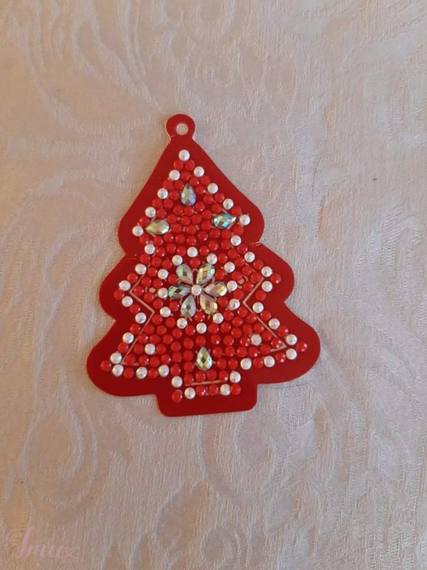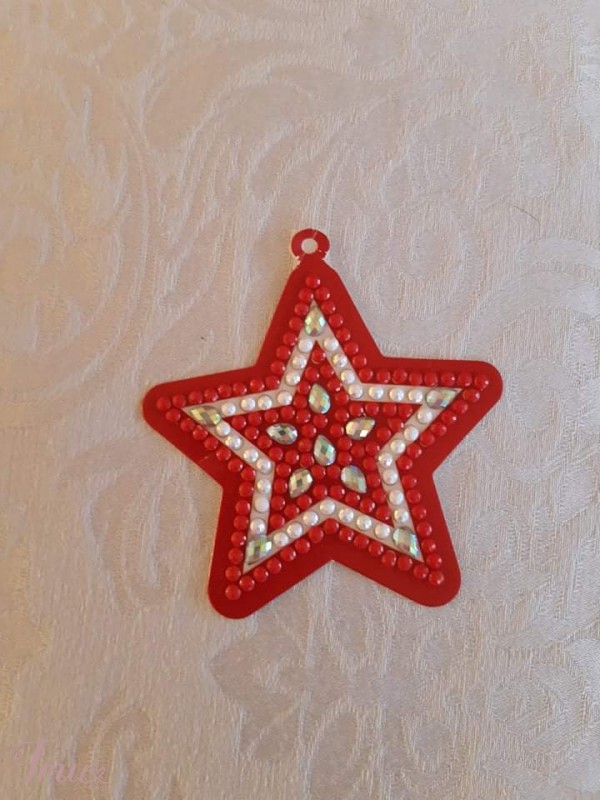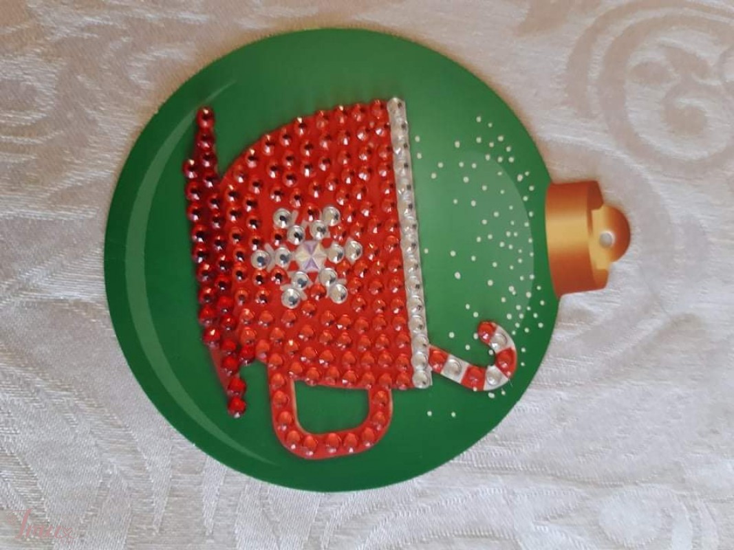 Popieriniai žaisliukai dekoruoti deimančiukais. Galima kabinti ant eglutės, galima pridėti prie dovanos. Kitoje pusėje galima užrašyti palinkėjimą. Baltai raudoni plonesni ir sunkiau laikosi pakabinimas, bet sutvirtinti iš kitos pusės. Kaina 0,8-1€