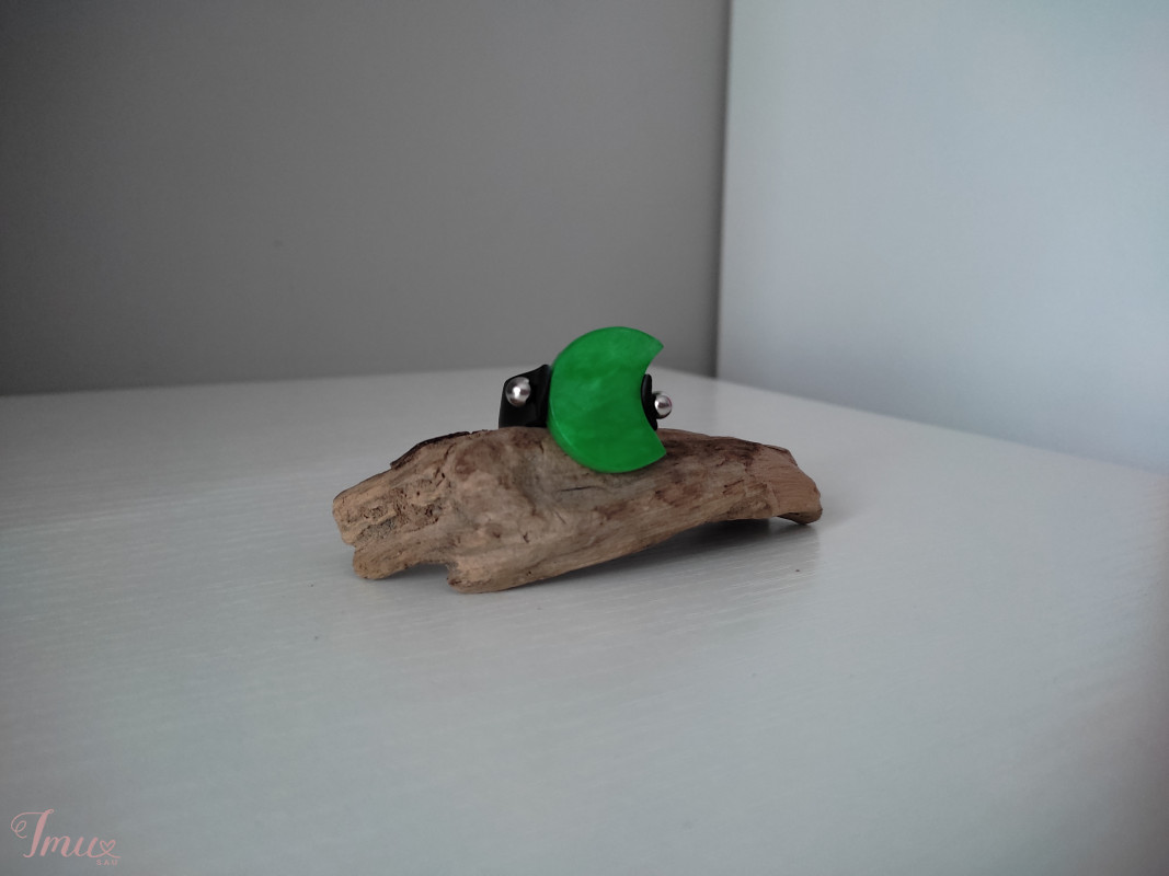 Labai gražios žalsvos spalvos, mėnulio formos, rankų darbo žiedas (2,5cm) 🙂🤗 Žiedas pagamintas iš pagrindo, kurį sudaro kaučiuko odelė ir metalinis stripelis, kurio galai užsisuka metaliniais rutuliukais. Ir mėnulio formos dalis, kuri pagaminta iš šaltojo porceliano😉 Žiedas gaminamas pagal Jūsų nurodytą dydį. :) Galite rinktis iš šių spalvų: Raudona/Juoda/Žalia/Mėlyna/Geltona/Arba marga Visi mano žiedai gyvena čia👇 http://www.vihobby.lt/darbai/ziedai Priimu individualius užsakymus: http://www.vihobby.lt/kontaktai Telefonu: +3706 0201417; El. paštu: vitule.p@gmail.com Asmenine žinute