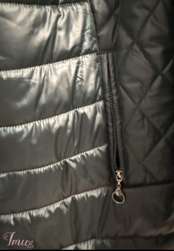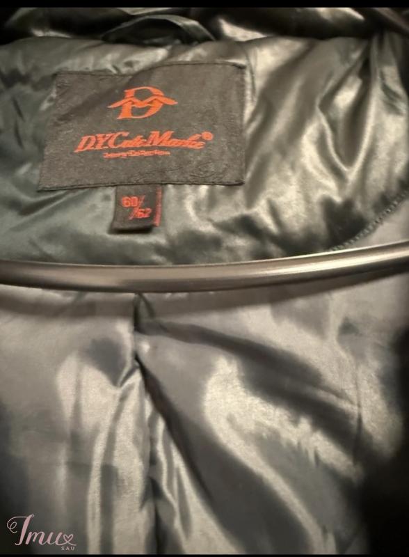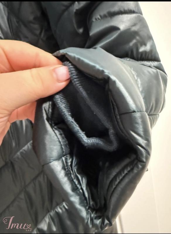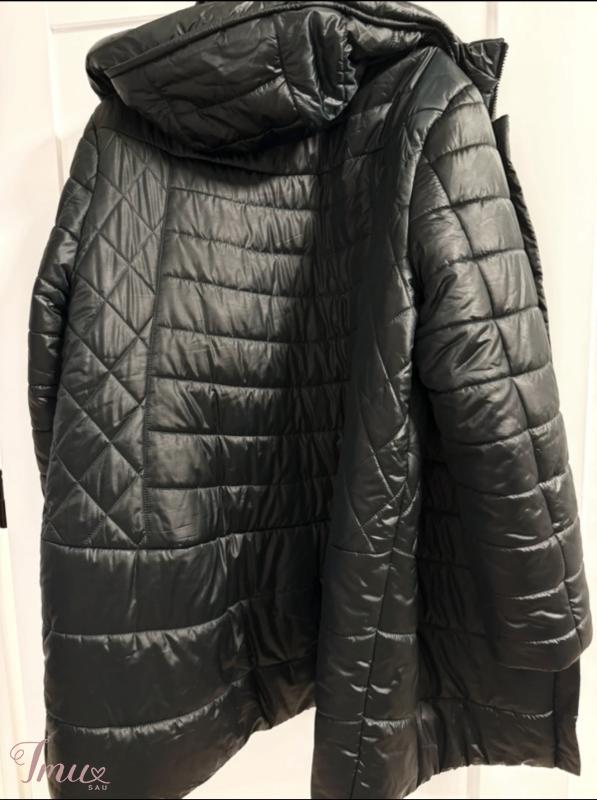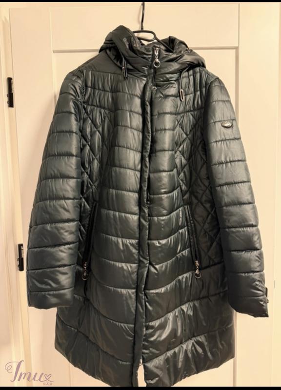 Kupranugario vilnos žieminė striukė su kapišonu, tamsiai žalia 60-62 dydis, per krūtinę ir klubus ~130cm., ilgis 89cm