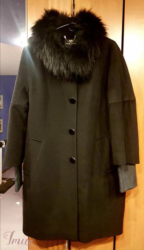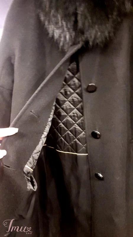 Žieminis vilnonis paltas su natūraliu kailiu bei oda