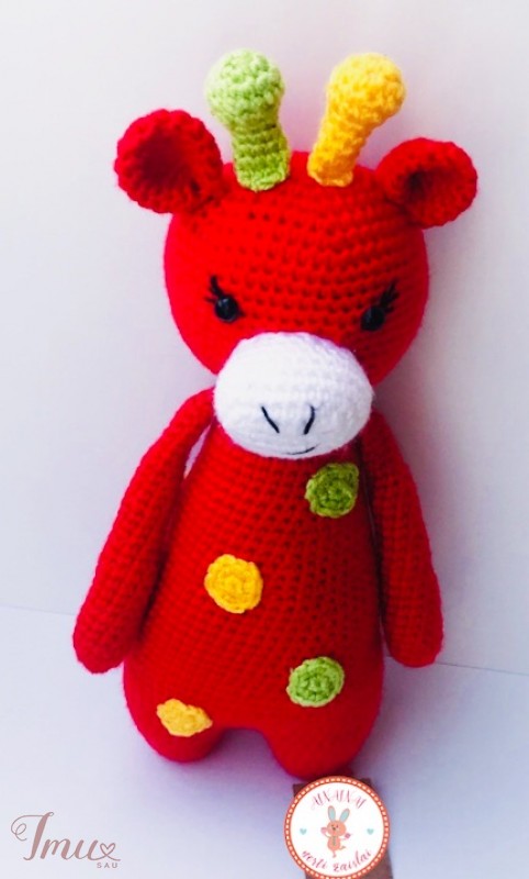 Rankų darbo nertas žaislas ,specialios akytės,užspaudžiamos vidinėje pusėje ,specialus kamšalas žaislams ,siūlai ,skirti vaikams.Facebook “Ainainai nerti žaislai”